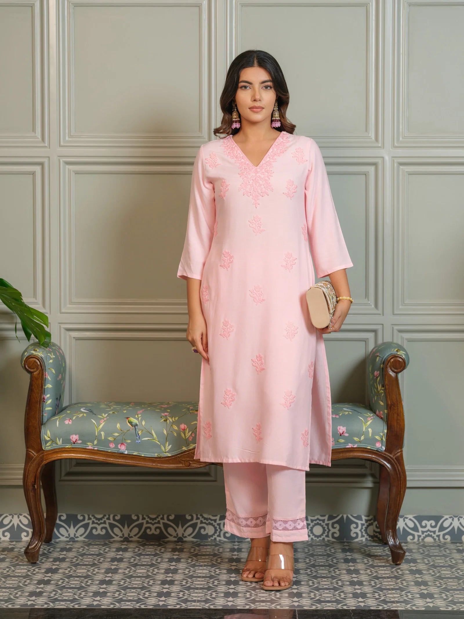 Elegant Chikankari Embroidered Cotton Kurti Set