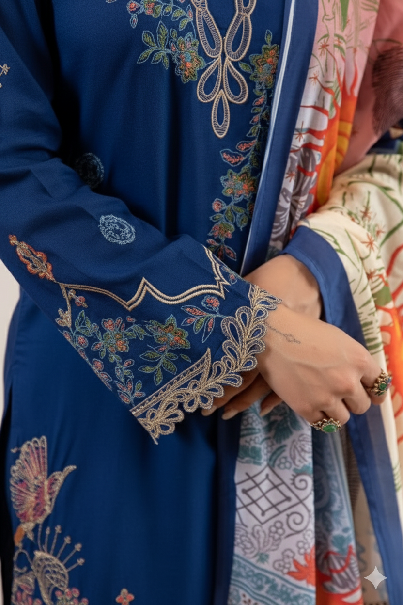 German Rayon 3PC Suit Set with Heavy Embroidered Kurta